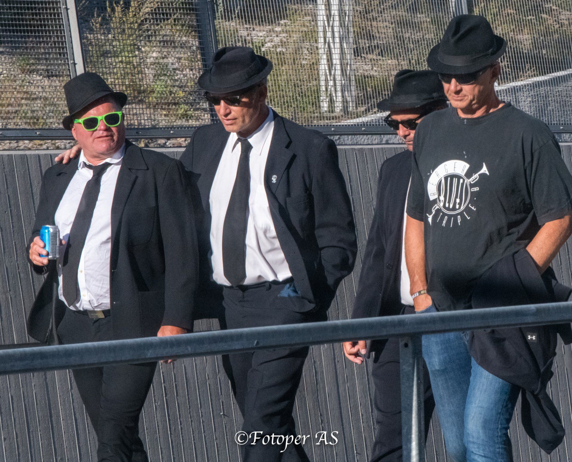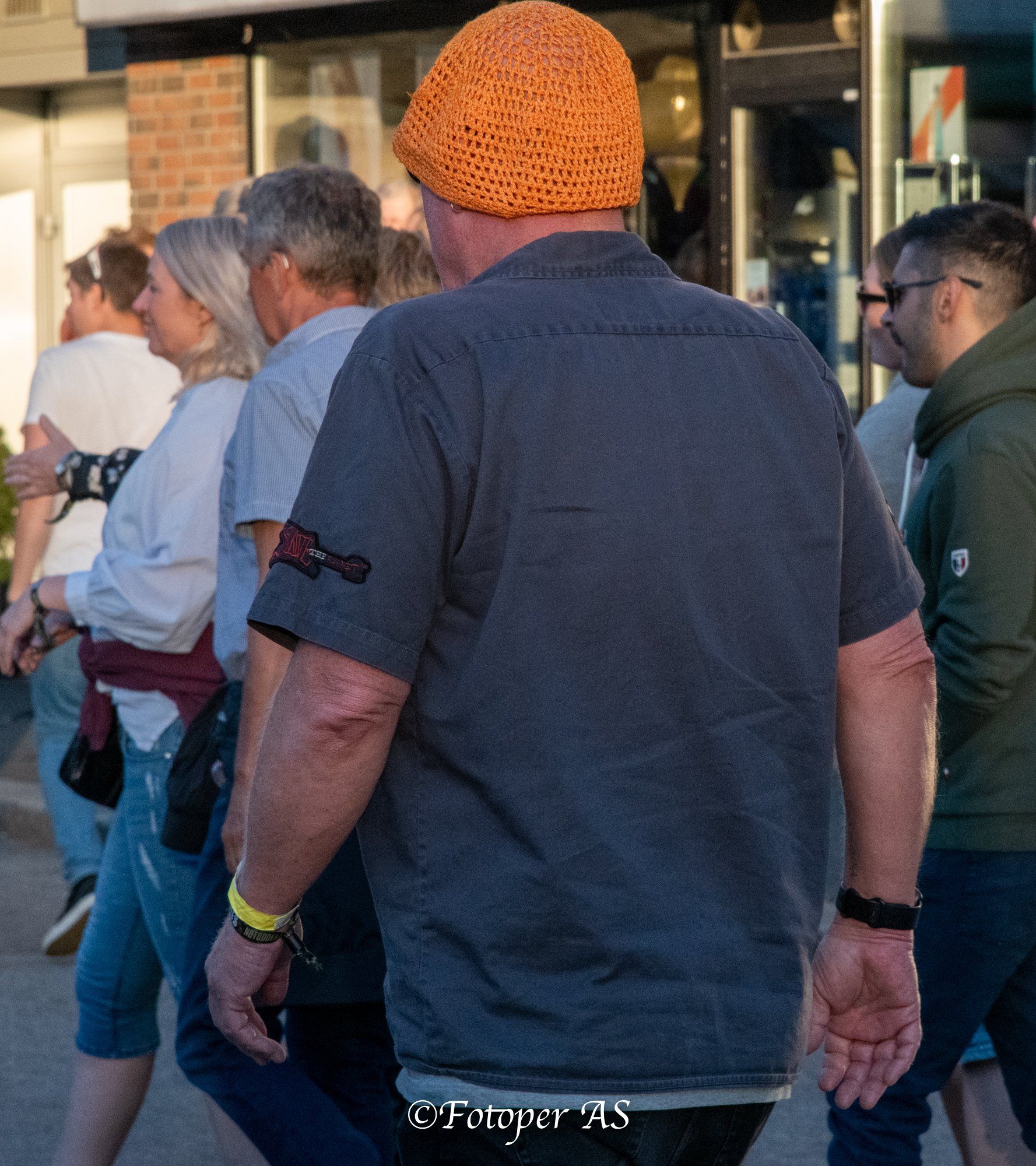 Blues Brothers i byen? Mat må´n ha. Noen prøver seg på en dans, men bandet hadde bare lydprøve så det ble en kort dans. Folk i farta. Hår, skjegg og røyk. Mange spesielle antrekk og personer. En kar var ganske sliten og varm, men bar med seg jakka og magen. Buksa hang sånn passe på. Og en kar hadde med seg kaninen på luftetur. Mye å se i Notodden.