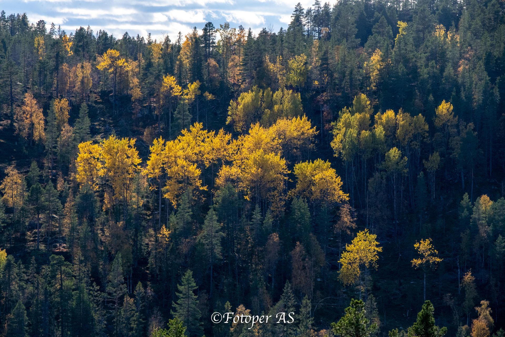 Bikkja til Olaf har hatt los ei god stund, og vi følger lyder over en lengre strekning. Jeg setter på telelinsa i et forsøk på å se etter bikkja, og kanskje en elg foran. Det eneste jeg ser er mange flotte høstmotiver. Elling sjekker peiler og radio for å vite hva som skjermen mens han nyter høstfargene.