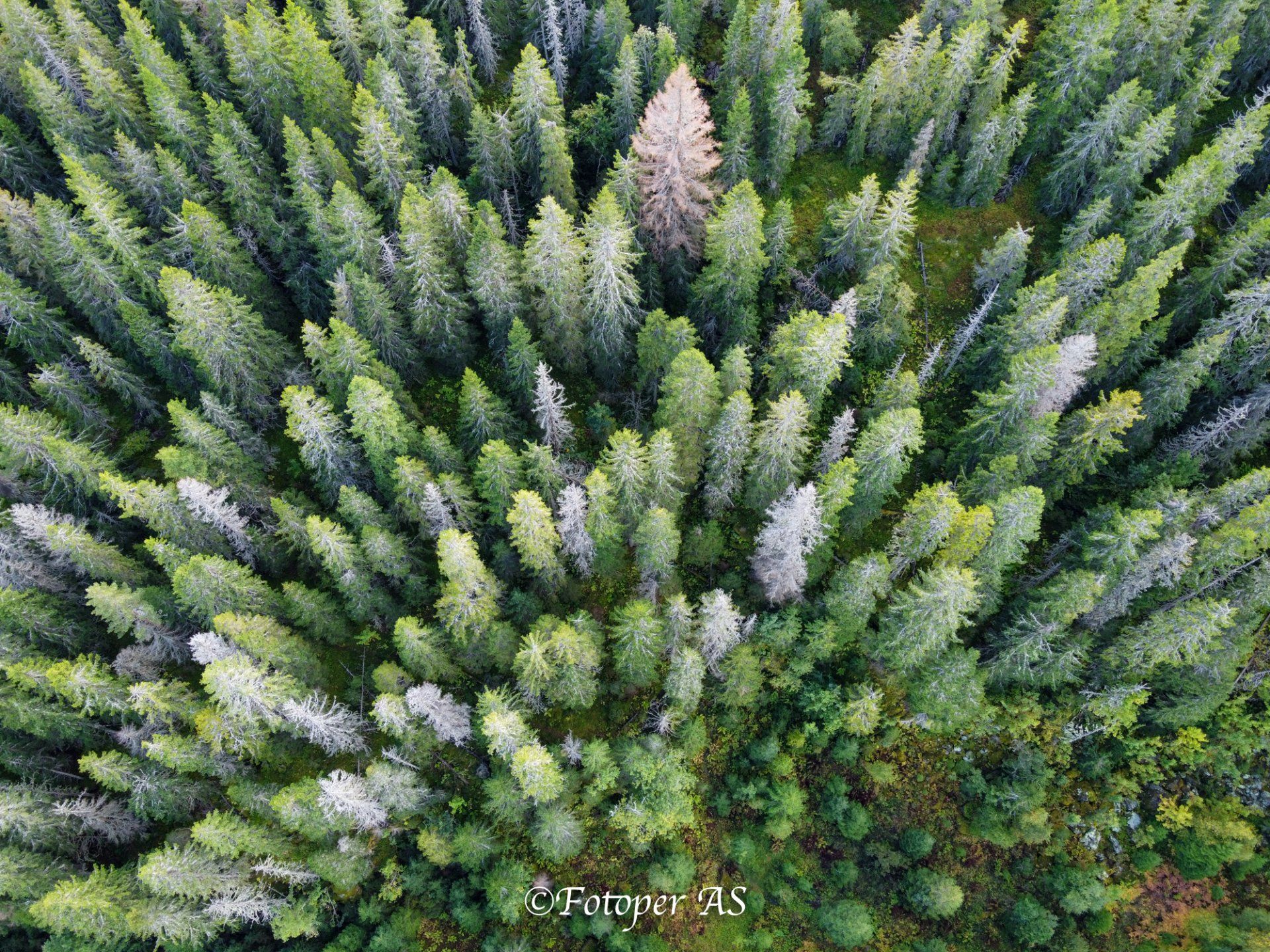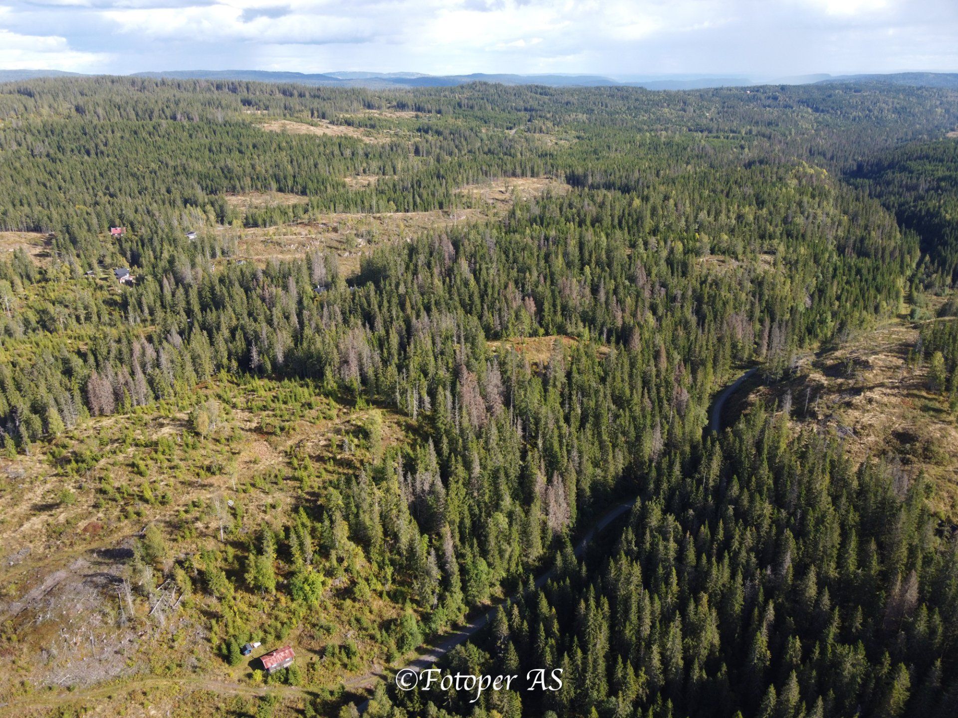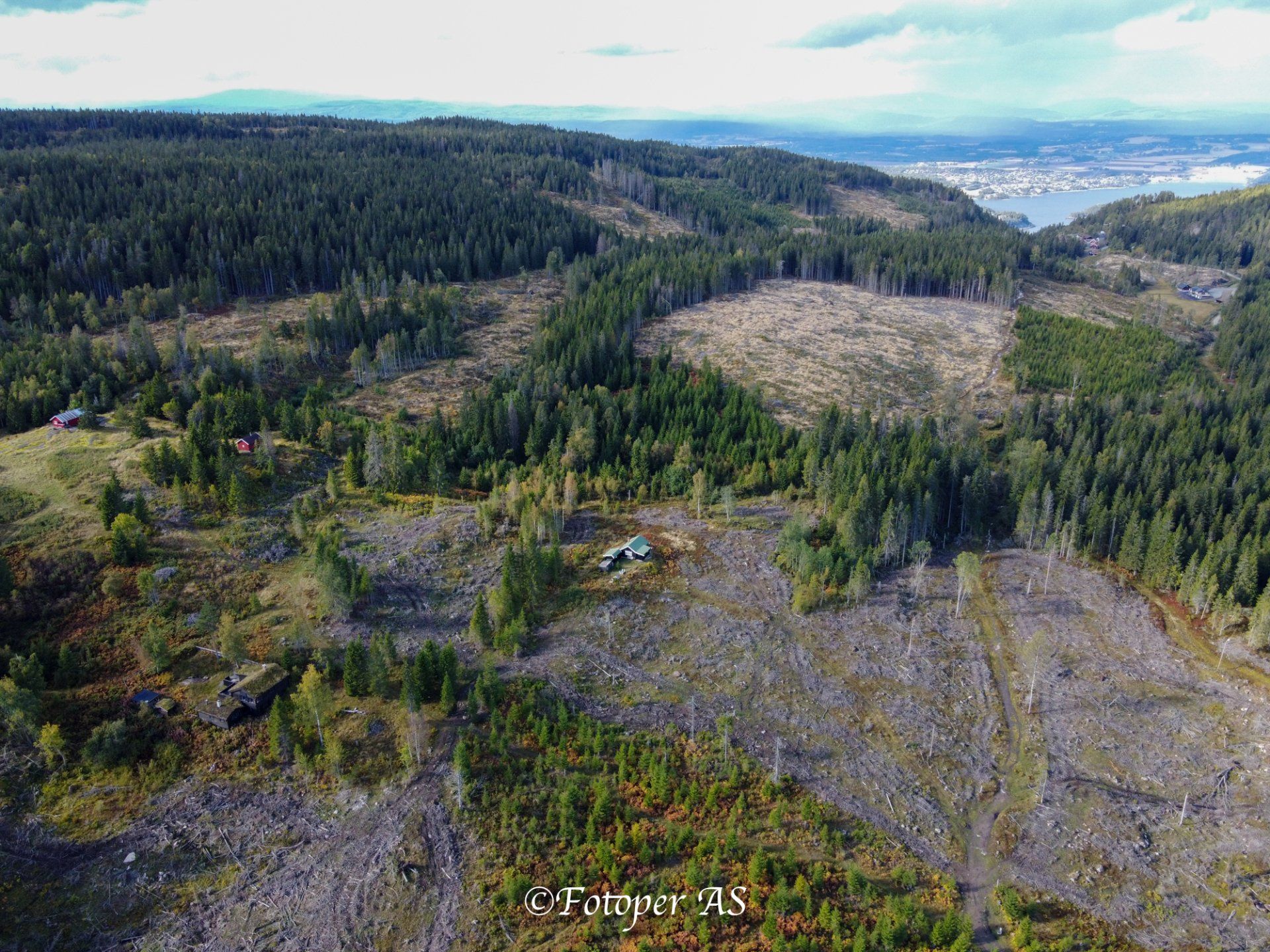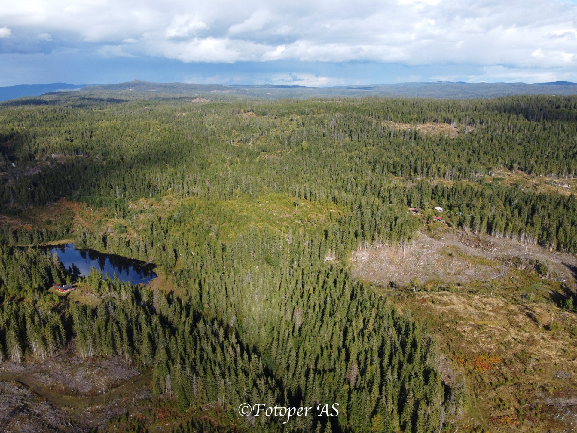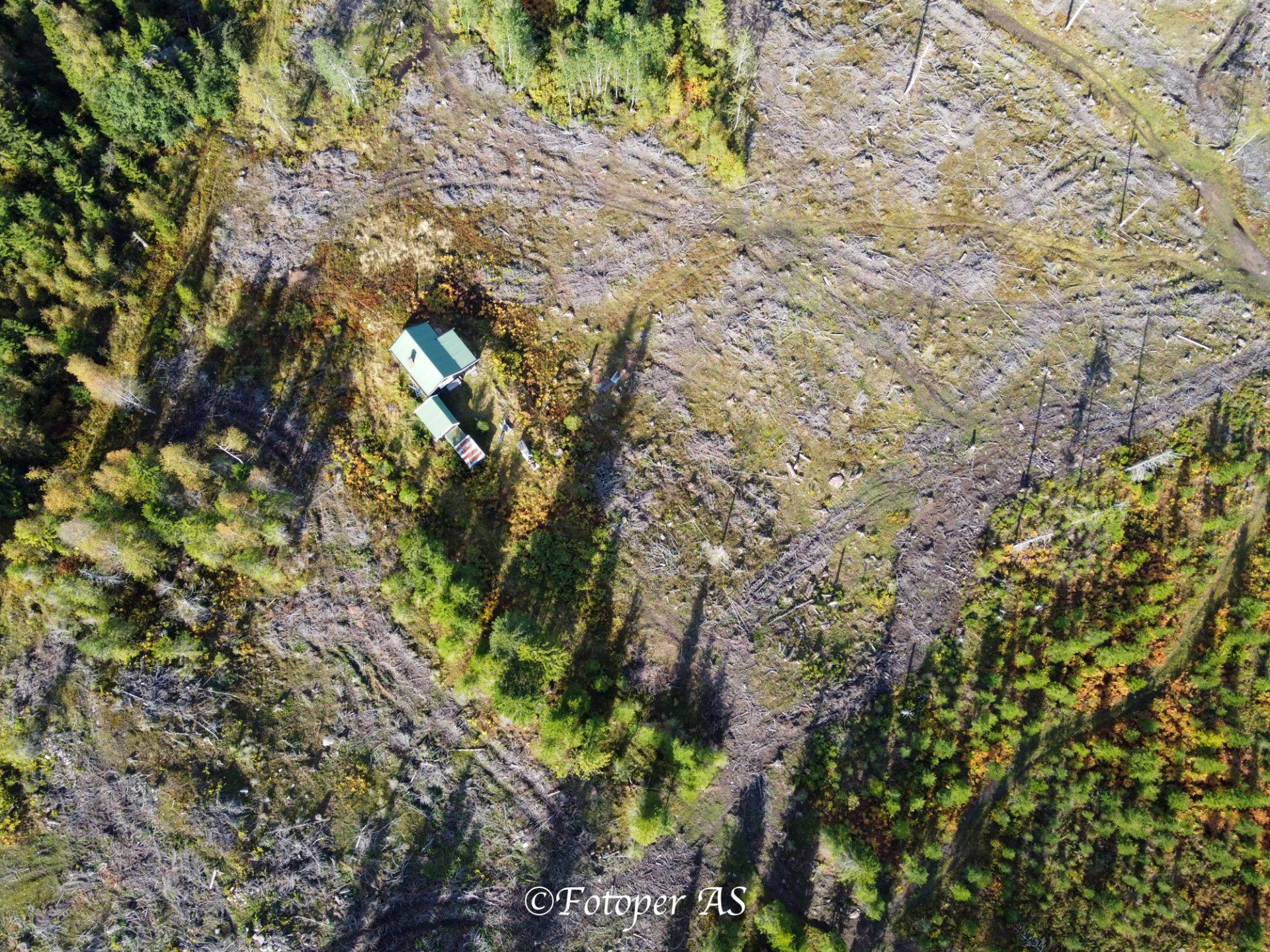 Når jeg kommer opp på onsdag er det sol, nesten vindstille og høstfargene sprer seg utover. Da synes jeg det er perfekt for en dronetur i området ved hytta. Fra 100 meter høyde er utsikten bra, og jeg ser hvor mye skau det er i denne delen av Nordmarka. Riktignok er det høgd ut en del felter, men det er mye skau igjen enda. Og det er jo plantet nytt, så det går ikke så mange år før det gror opp igjen nye trær. Her er en 360 graders rundtur med start fra hytta.
