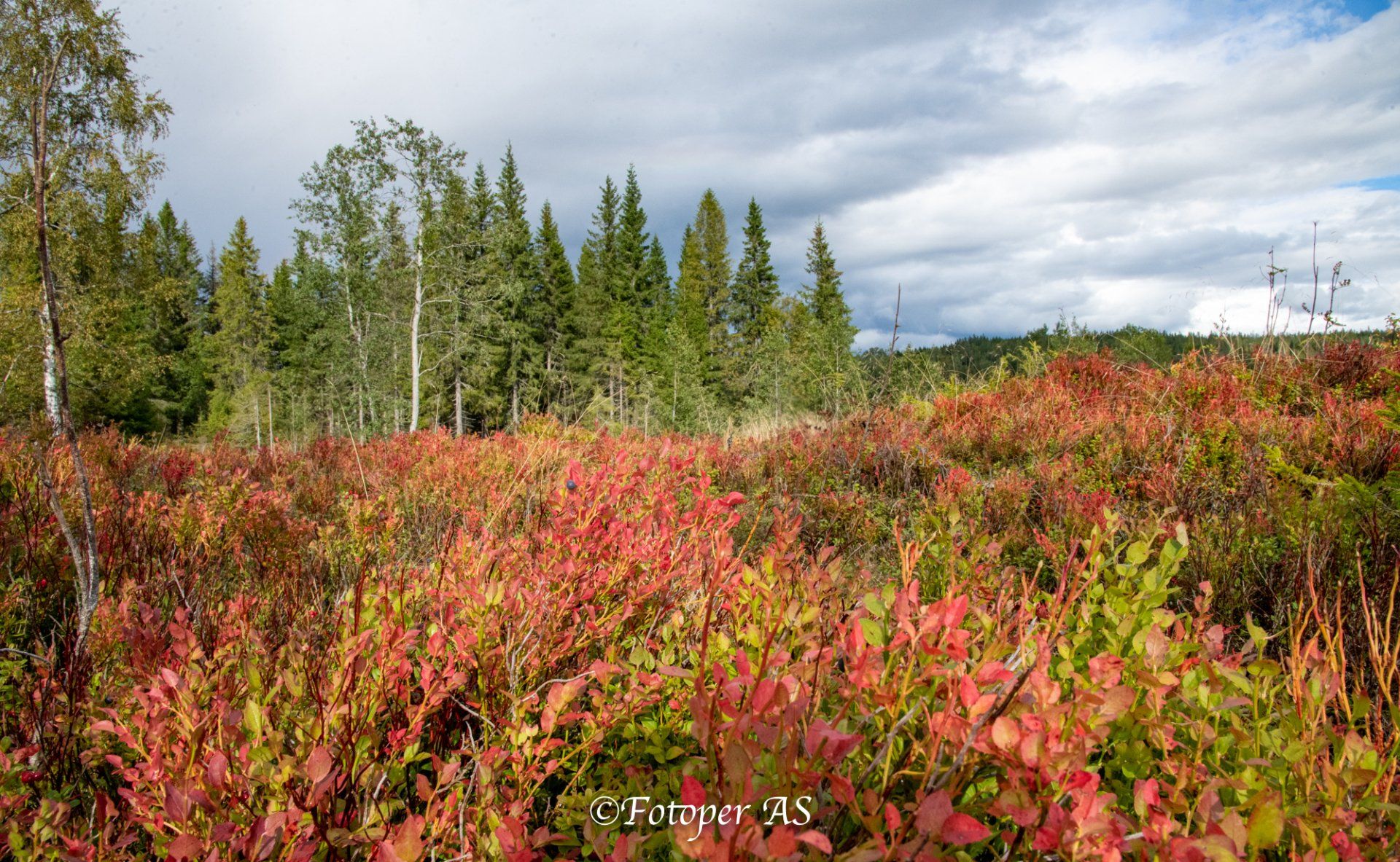 På vei tilbake til hytta og rundt den er det fine høstfarger, det er fortsatt mye blåbær å finne, og tyttebæra er røde og klar til plukking.