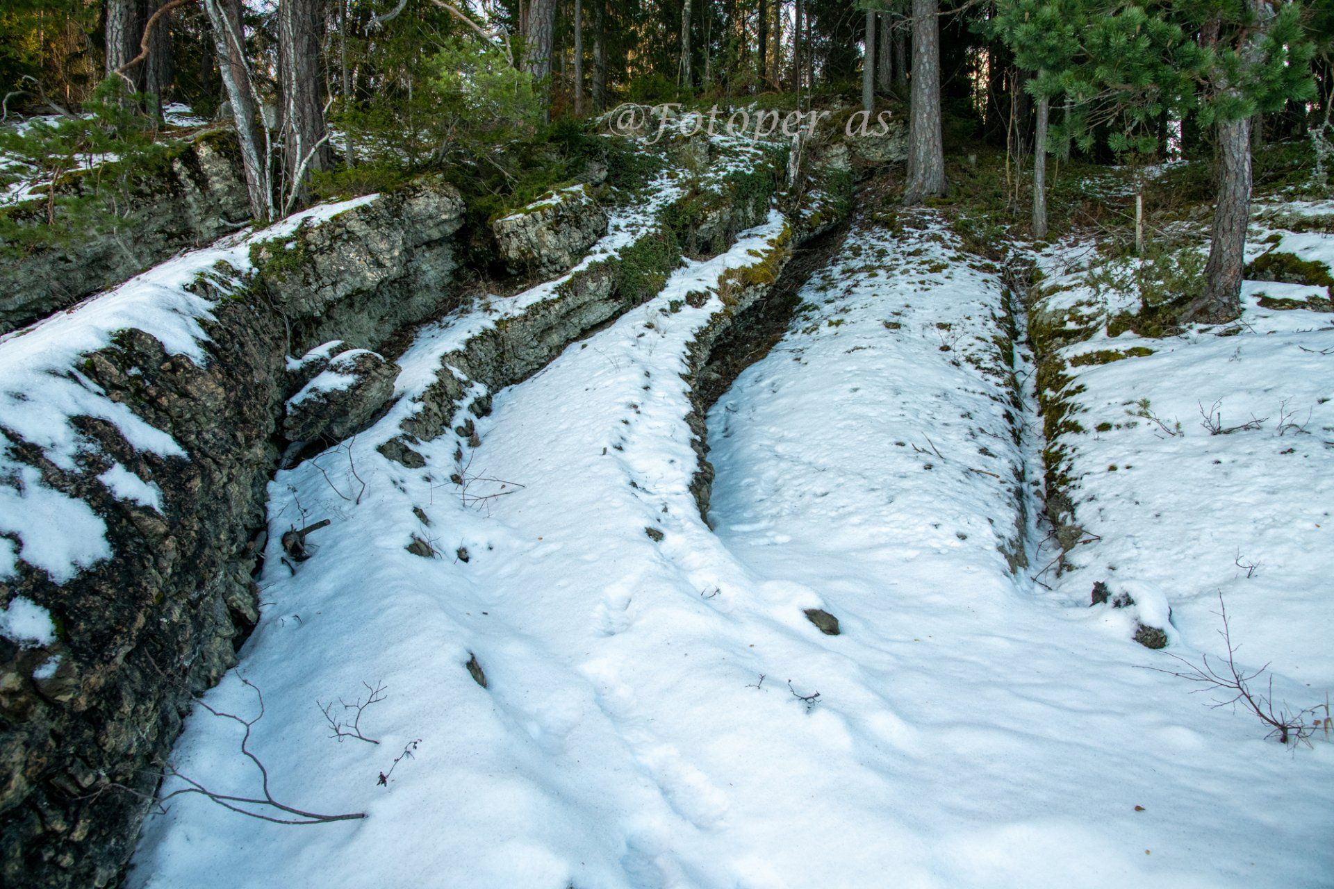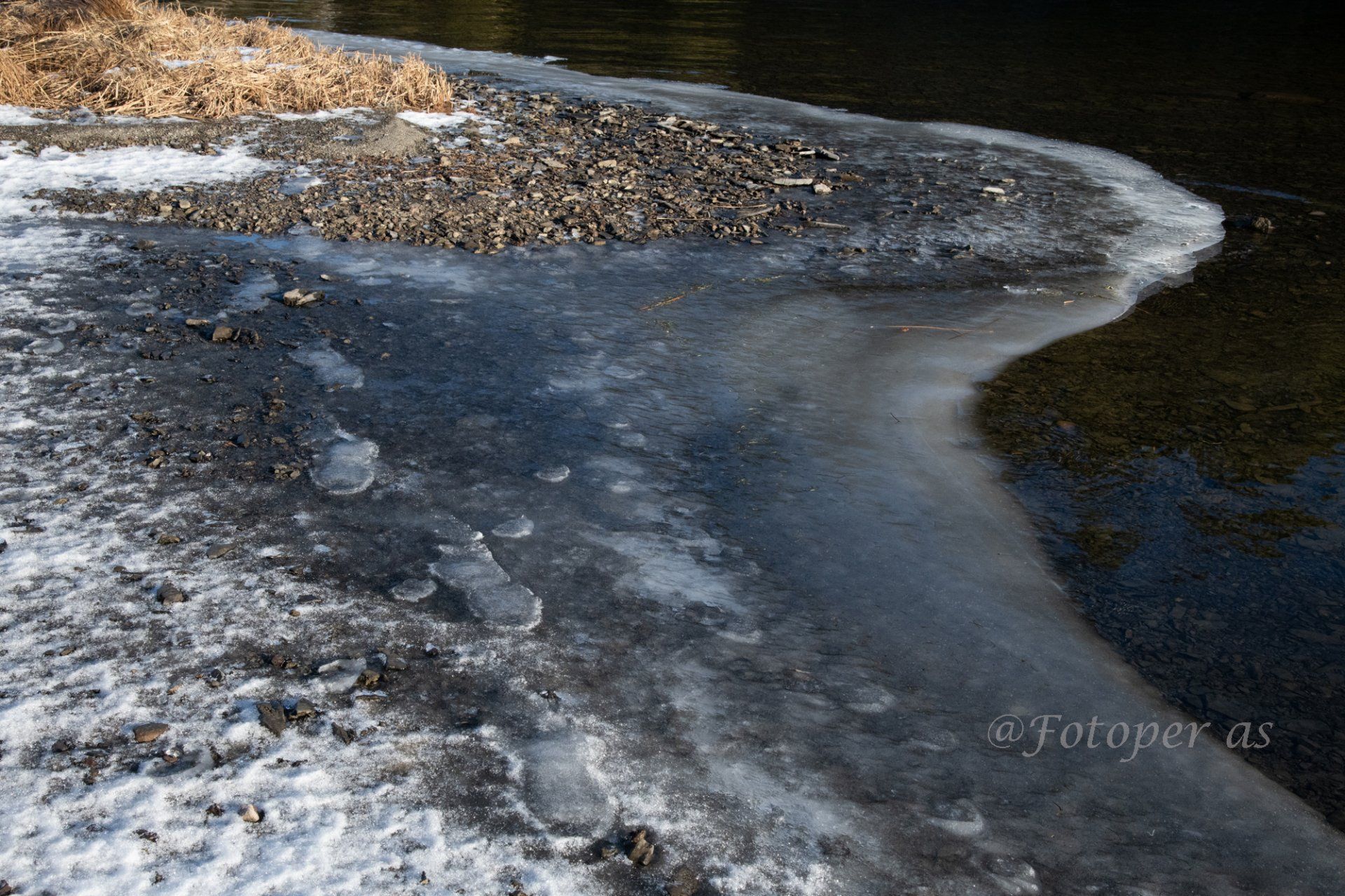 Jeg velger å gå til høyre først, der er det skygge og litt enklere å ta bilder. Ligger litt is her også.