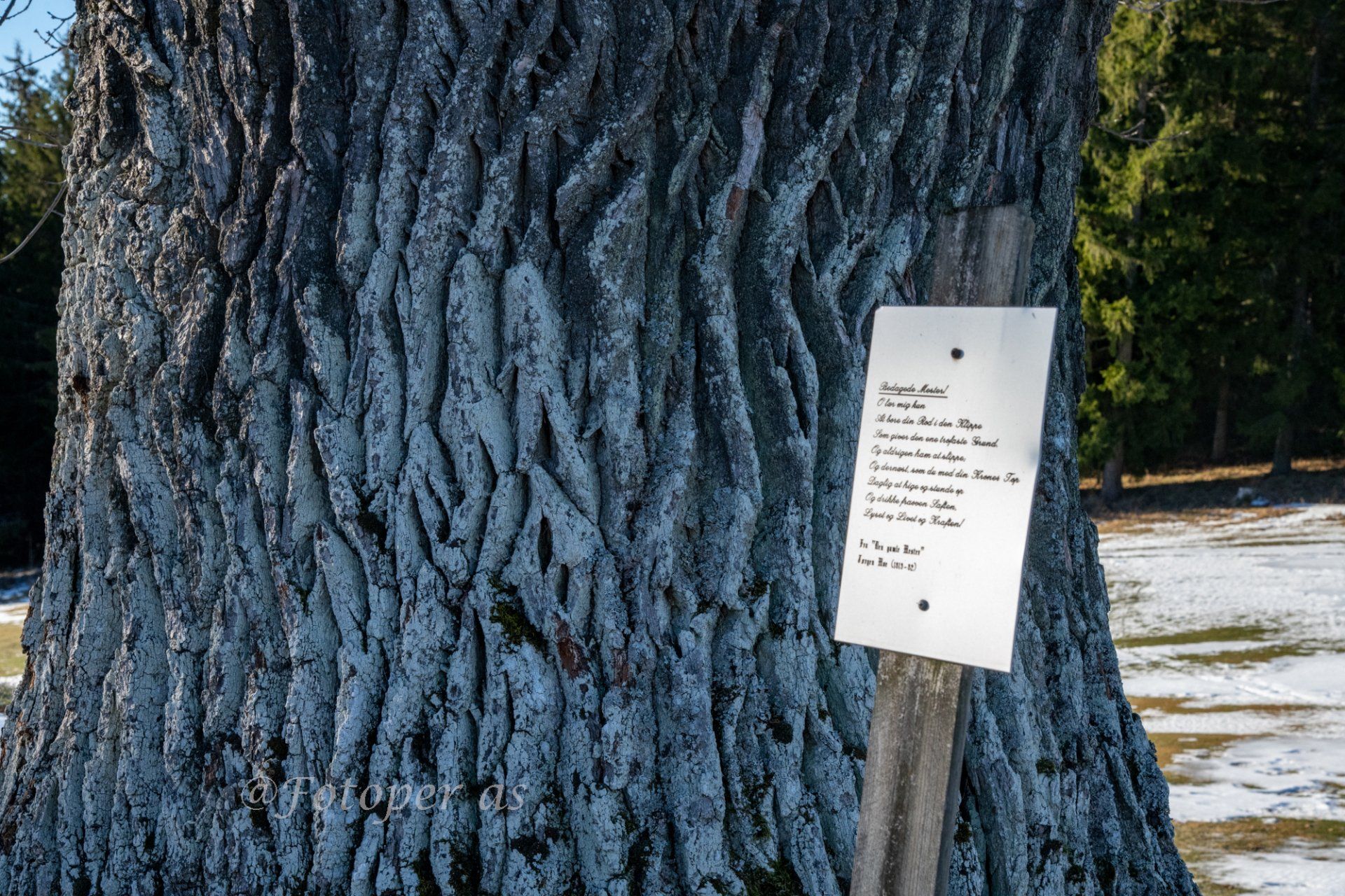 Som nevnt hadde jeg tenkt å gå rundt Storøya, men det har blitt så kraftig vind at jeg velger å gå tilbake samme vei som jeg kom. Det ligger store jordhauger flere steder på golfbanen, vet ikke hva de skal brukes til. Jeg går opp til den gamle eika som står ved banen, den skal visstnok være mer enn 1000 år gammel. Til tross for det kommer det nye skudd. Barken viser også at treet er gammelt.