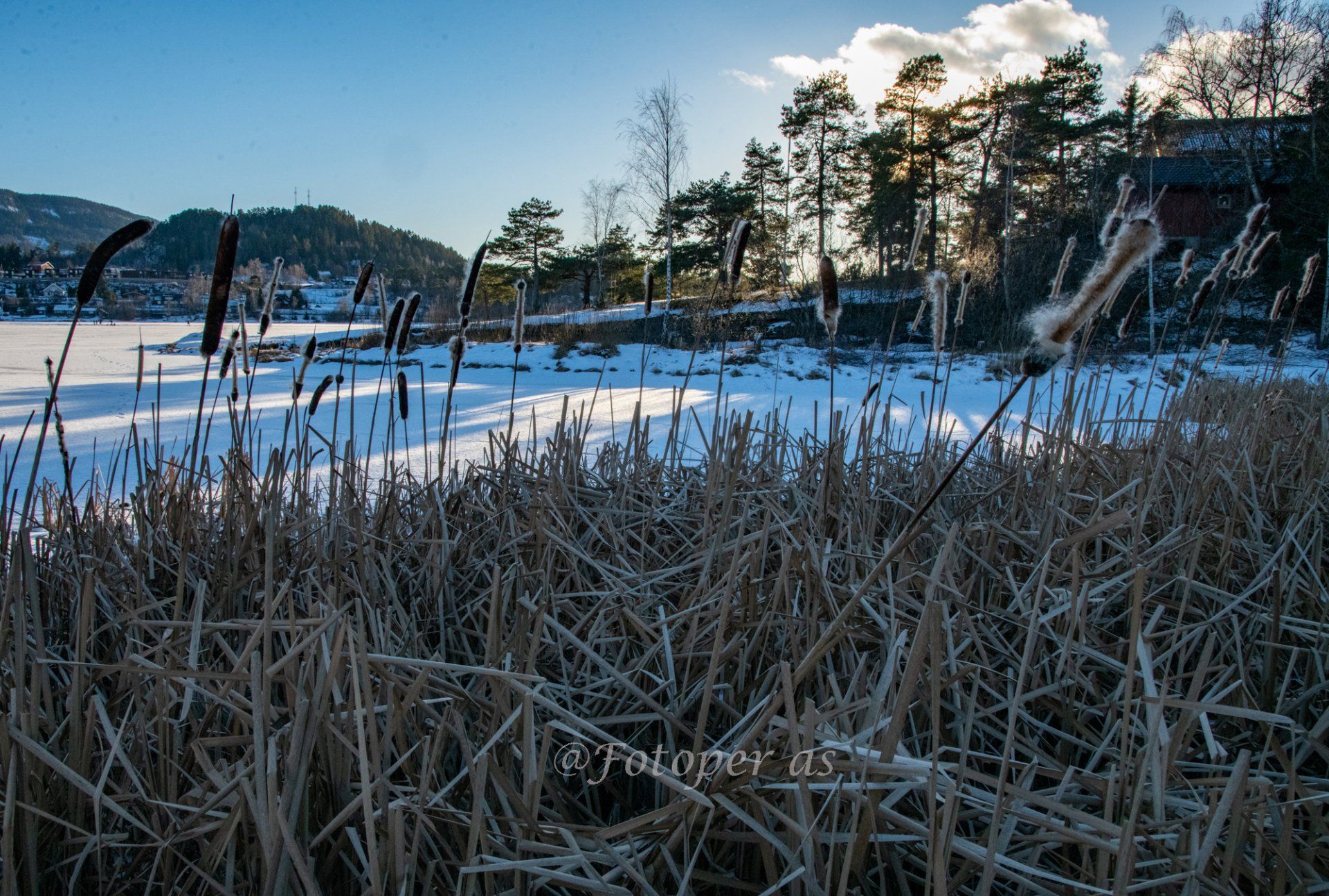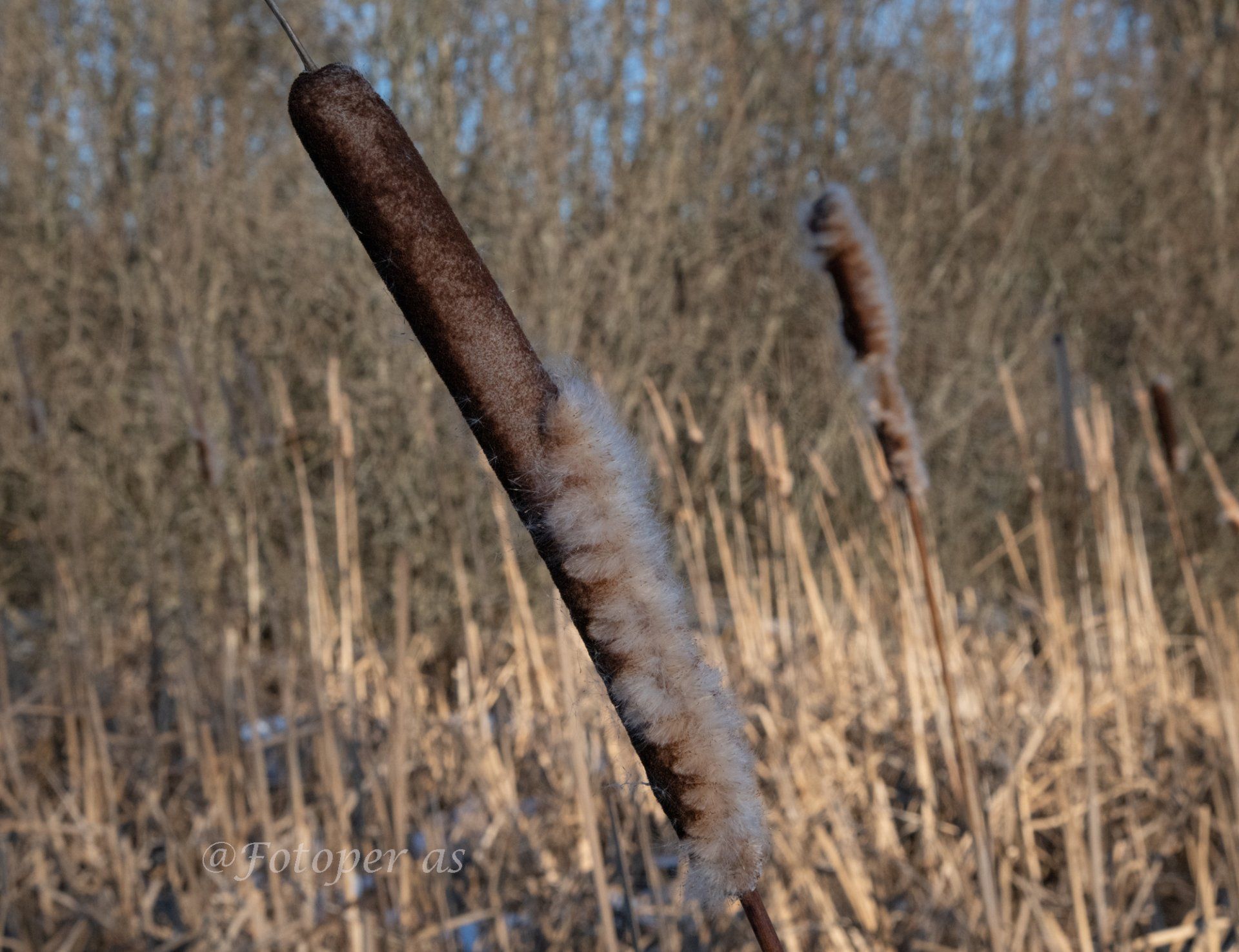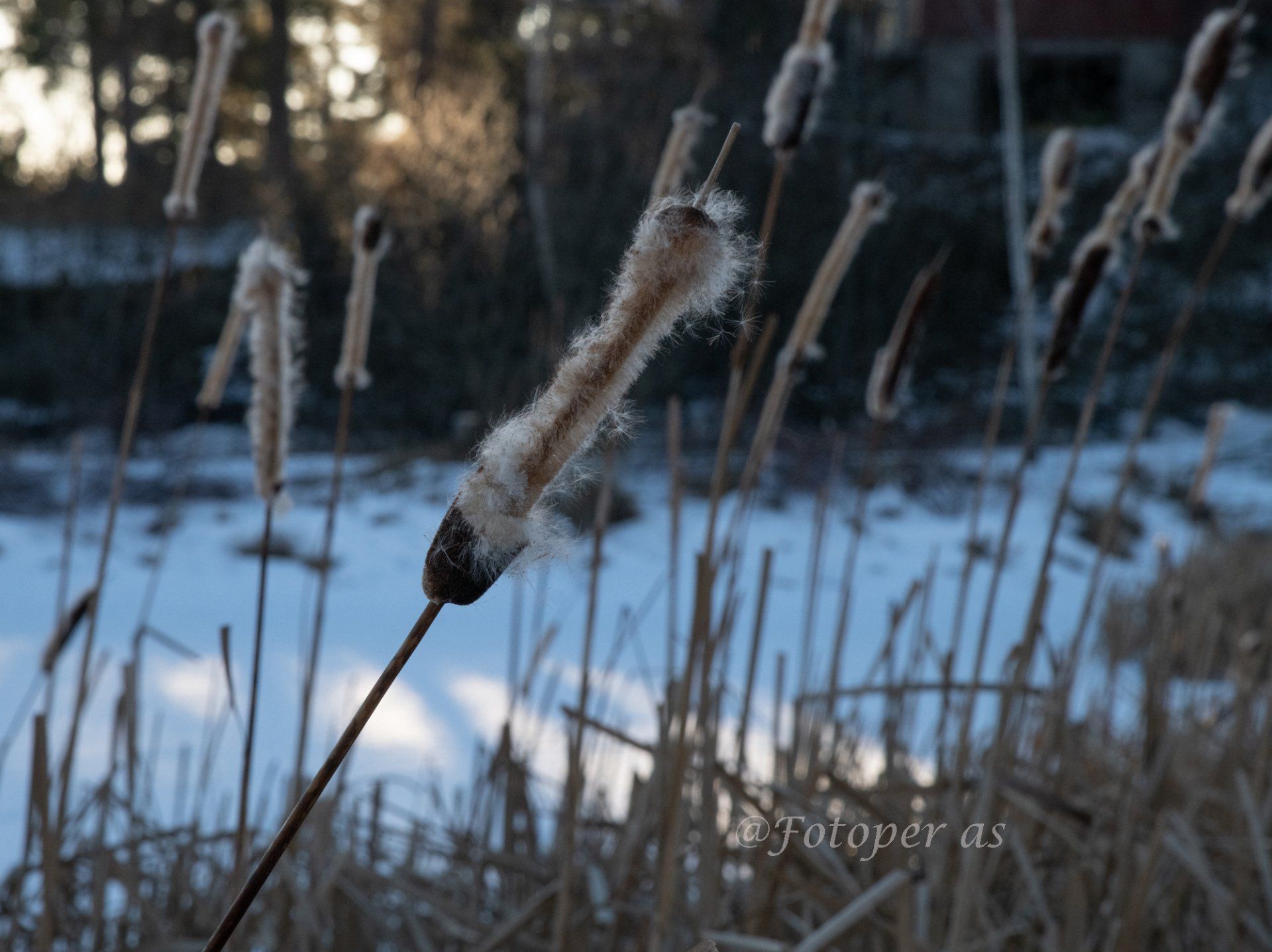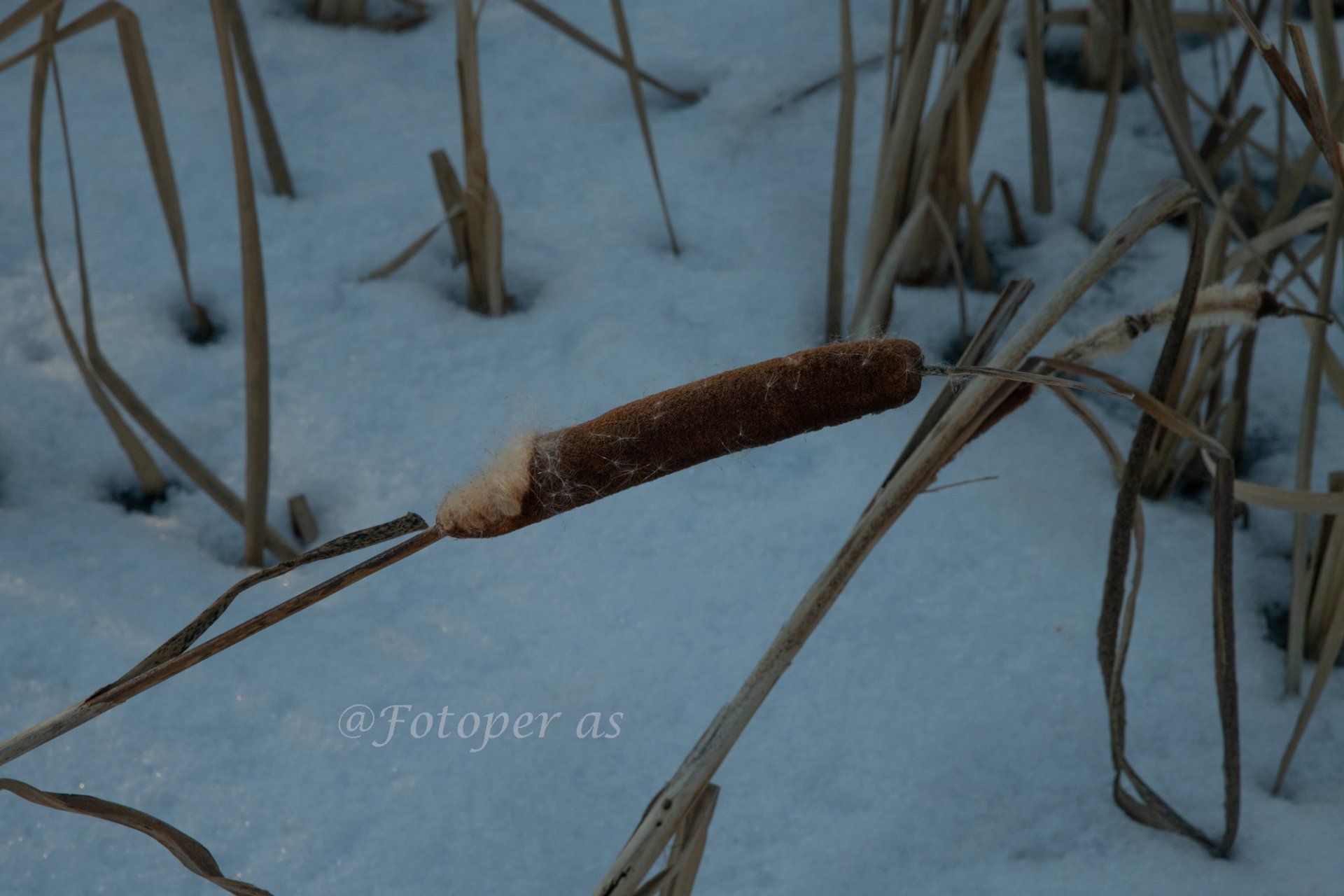 Dagens utflukt avsluttes med en tur på isen fra Vik tur/retur Høyenhallstranda. Jeg prøver å gå der det er snø, utenom den er det veldig glatt. På returen ser jeg noen siv nær land. I vinden løsner deler av dem og fyker av sted.