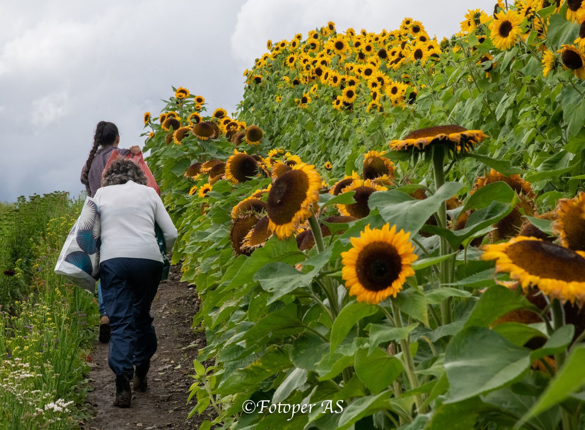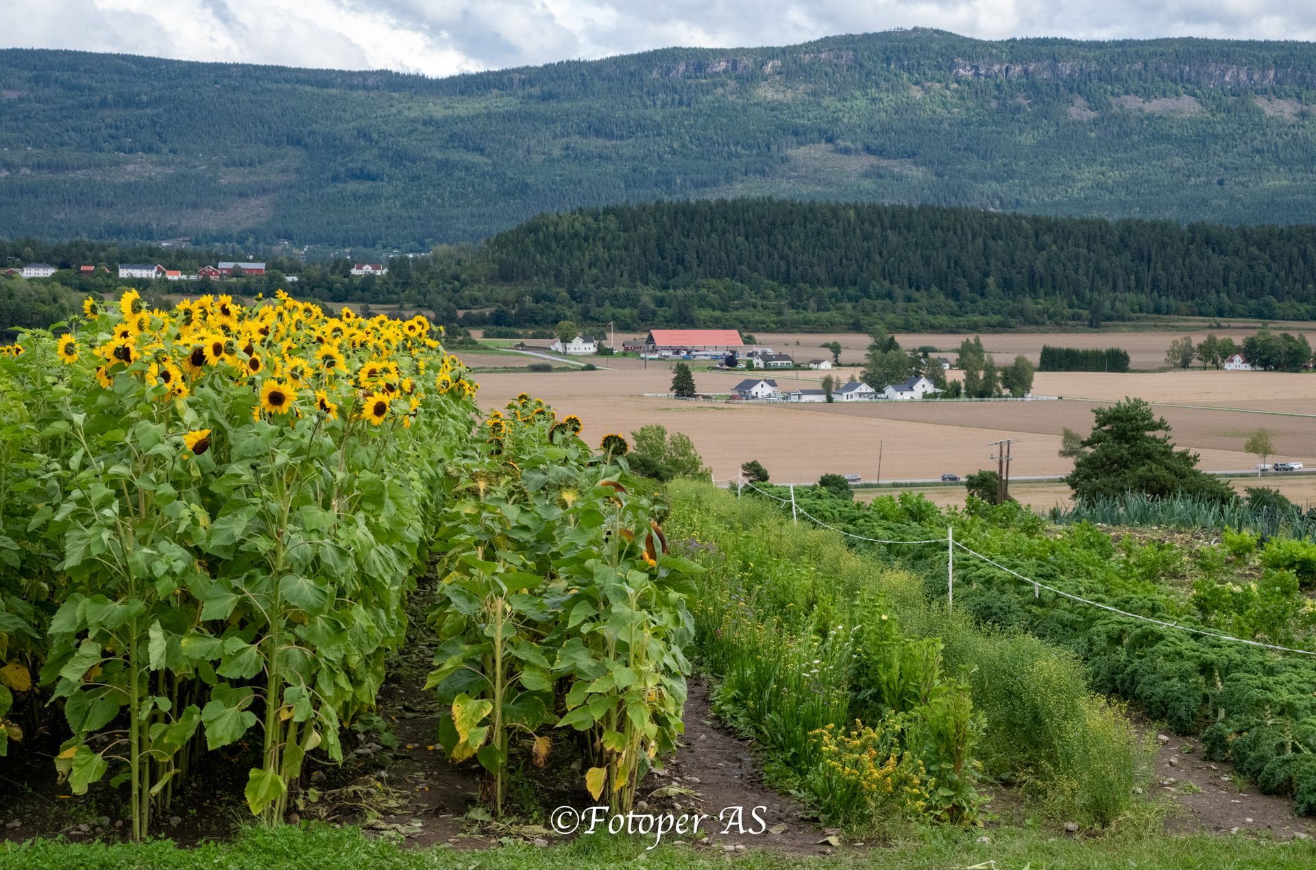 På enden av Steinsletta ser jeg skiltet om salg av mais på Bjerke. Fra veien ser jeg også solsikkene som står i full blomst, jeg må dit og ta noen bilder av blomstene. Det er skikkelig klinete å gå her, men hva gjør man ikke for noen blomsterbilder.
