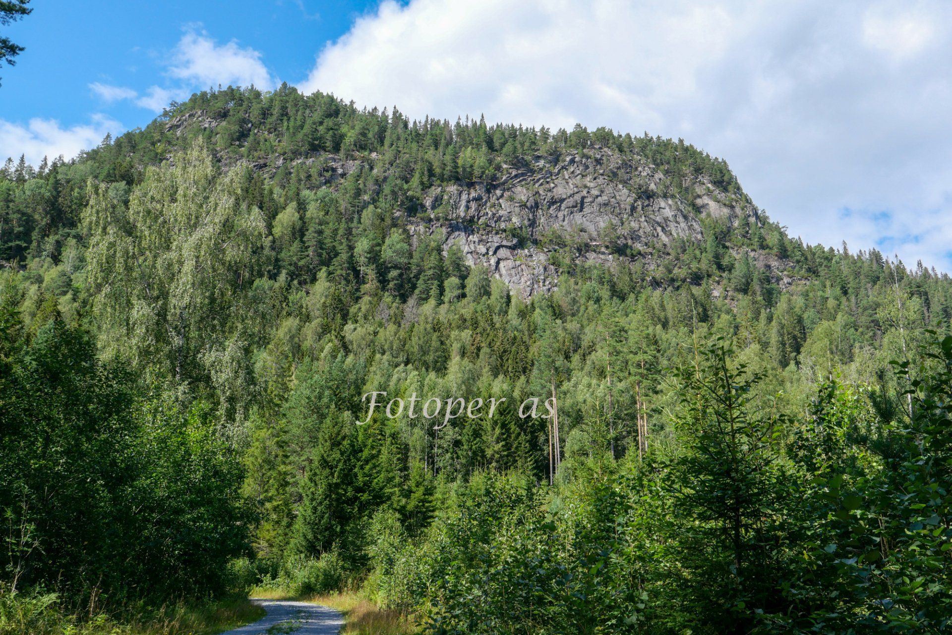 Det er langt og kjedelig å gå på veien ned til bilen, så det er godt når jeg endelig er framme. Men det har vært en fin rundtur i et fint vær. Hvis du vil gå turen, anbefaler jeg fjellsko og lange bukser, hvis du ikke liker at småtrær, bregner, lyng og annet "klør" deg på leggene. Fra der skiltet "Bedriftsidretten ti på topp" sto og opp til toppen brukte jeg ca 40 minutter inkludert en del fotostopp. I følge Ti på topp-appen er turen ca 7,3 km tur/retur og tidsbruken er 2-2 1/2 time, men det er beregnet fra der du parkerer bilen. Har du ikke vært her før bør du kan en tur nå i høst.