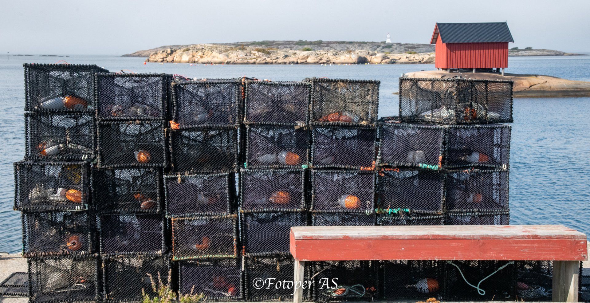 Jeg har sett på kart og lest litt om Hvaler, men jeg er usikker på hvor jeg skal kjøre for å finne motiver. Hadde skrevet opp en del steder på et ark, men det glemte jeg selvsagt hjemme. Bestemmer meg for å kjøre til Skjærhalden først. Her har Fjordfisk AS det største mottaket for fisk og skalldyr på Østlandet. Lastebilene står på rad og rekke, det samme gjør fiskekassene. Det kommer stadig reketrålere inn med kasser med reker, både rå og nykokte. Fjordkroken, som er utsalgsstedet, er stengt så det blir ingen reker på meg.
