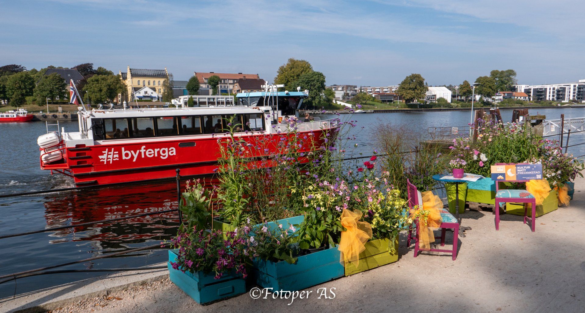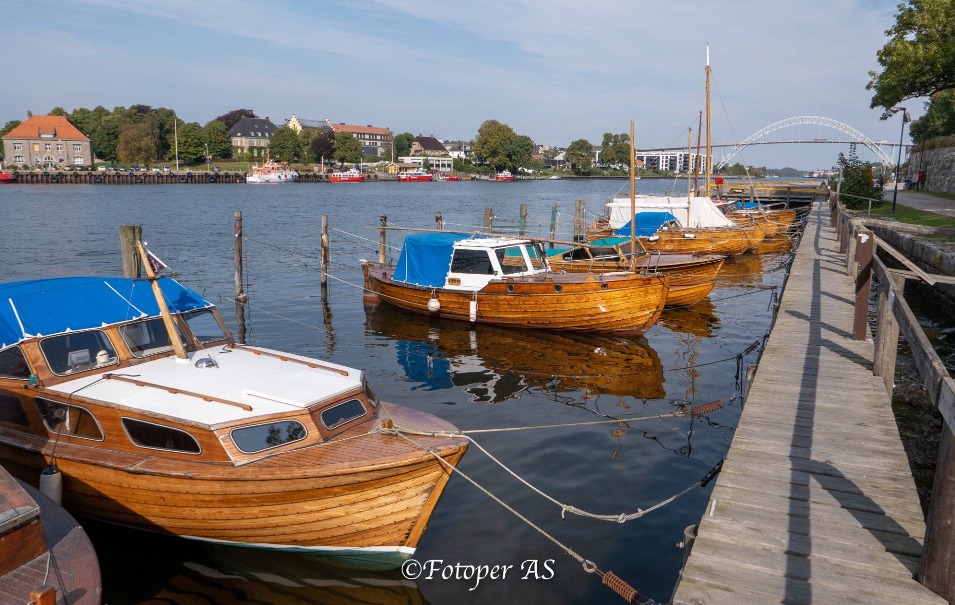 Etter en litt morgentur er det tid for frokost. Det er en rimelig dagparkering nær hotellet så jeg henter bilen og setter den der. Har med sykkel og tråkker litt rundt for å bli bedre kjent i Fredrikstad. Flott nede ved havna med leiligheter nær vannet og båter liggende ved brygga utenfor. Tør ikke tenke på prisen for en slik kåk med brygge. Glomma renner gjennom Fredrikstad og deler byen i to. Derfor går Byferga kontinuerlig fram og tilbake over elva, den er gratis og det går an å få med sykkel. Over i Gamlebyen merker jeg fort at det ikke er ok å sykle for det er brostein over alt, ikke godt å sykle på. Det er ikke så store avstander å gå så jeg parkerer sykkelen ved bymuren.