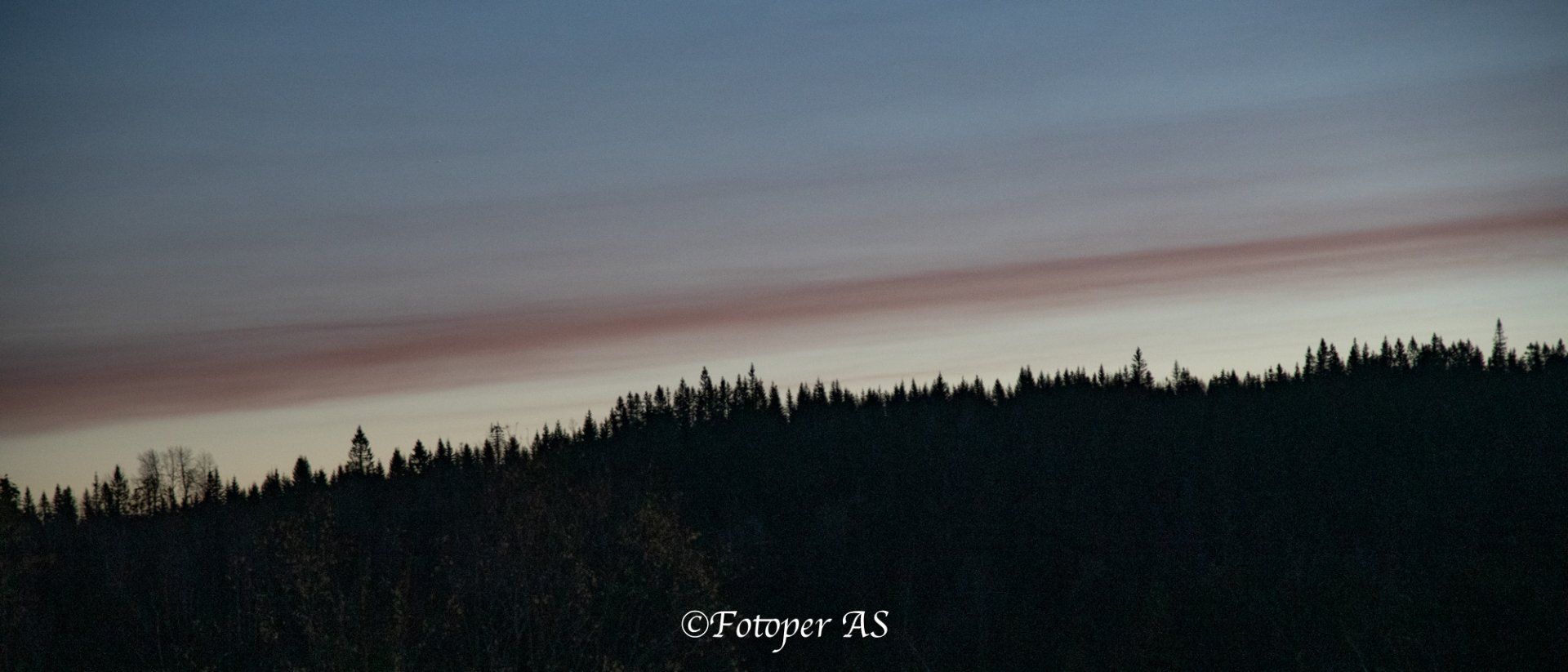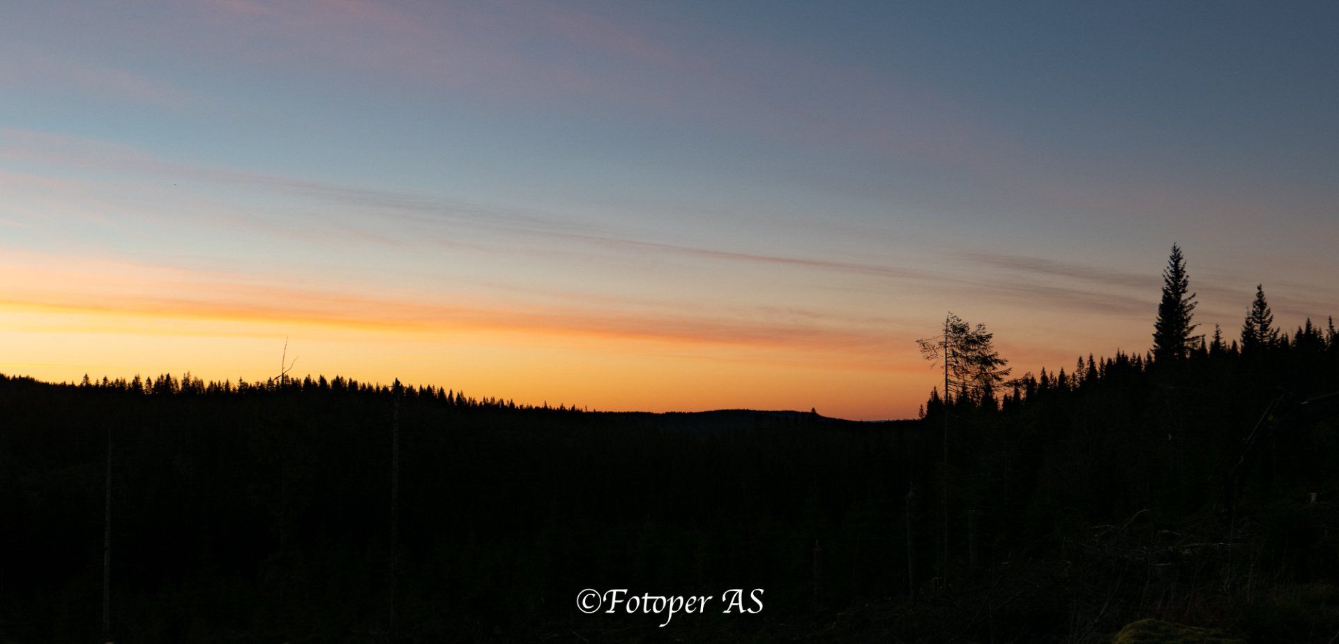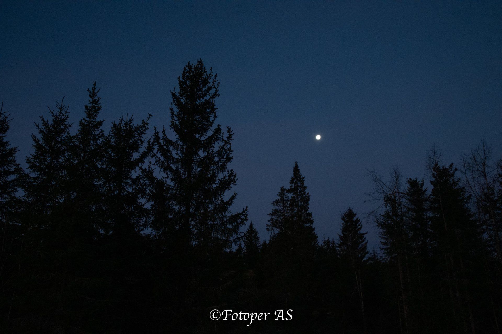 Det er tydelig inne i hytta at skauen rundt er borte, mye lysere og utsikten er veldig bra. Snart er det solnedgang på åsen mot Bureheim, månen kommer til syne og det blir et spesielt lys. Samtidig er det fin stjernehimmel i retning mot Bærum. Her er det bare nyte nye kveldsopplevelser. Det blir tidlig kveld for meg, bedre å legge seg enn å sitte og halvsove.