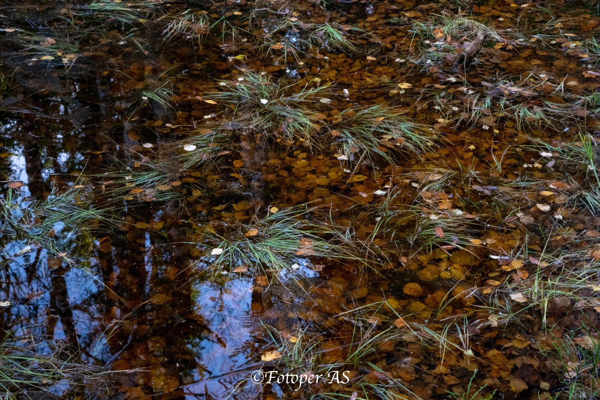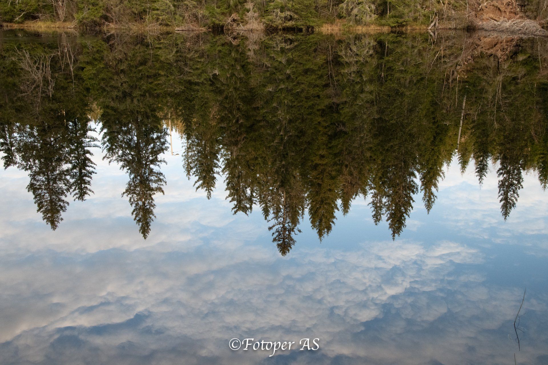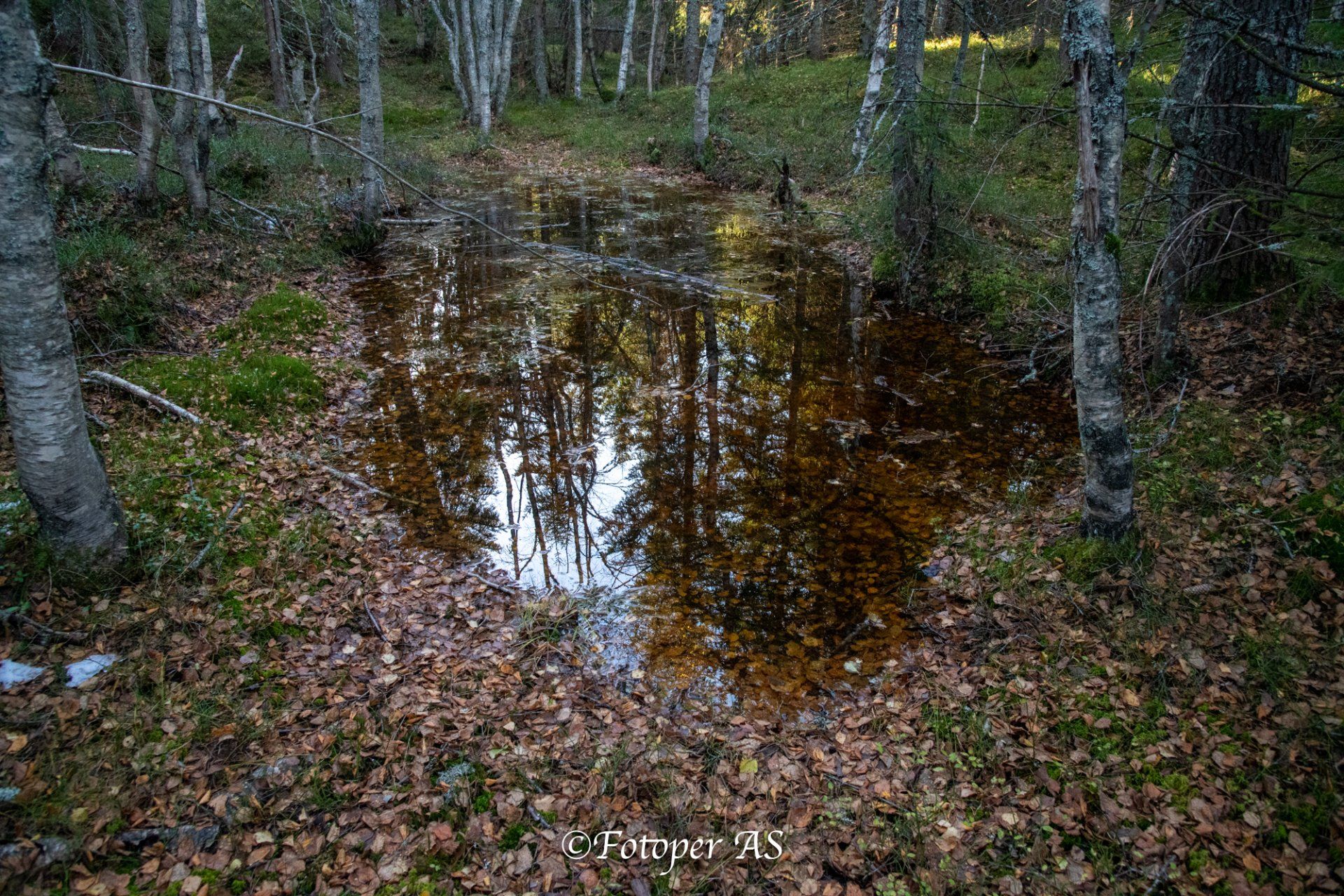 Må gå to turer for å få med alt ned i dag og finner igjen stien jeg brukte da jeg gikk opp. Snubler i kvister, tryner nesten og tråkker ut i et gjørmehøl. Nordsetertjernet ligger blikkstille når jeg kommer ned, ikke ofte det er slik. Kommer to par som er på vei til Sørsetra, også de må stoppe og ta noen bilder. Jeg er klar for hjemreise.