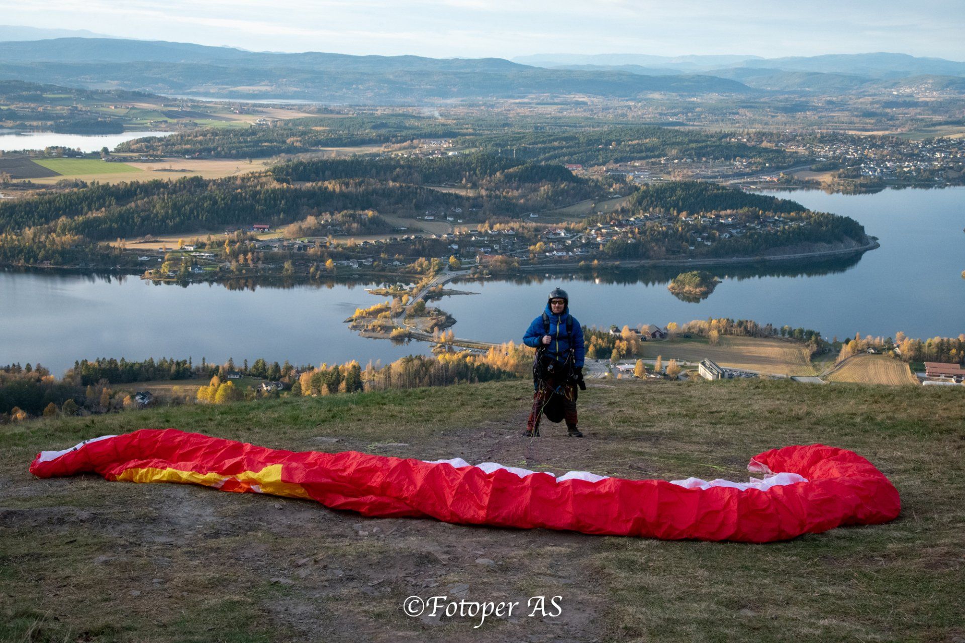 I Dronningveien er det en som venter på å hoppe ut med paraglider, men vinden blåser i feil retning. Vi slår av en prat mens han venter, men han må til slutt gi opp for vinden vil ikke snu. Det er så vakkert med utsikten over Ringerike herfra i dag at jeg blir stående ei stund å se på den før jeg kjører hjem.