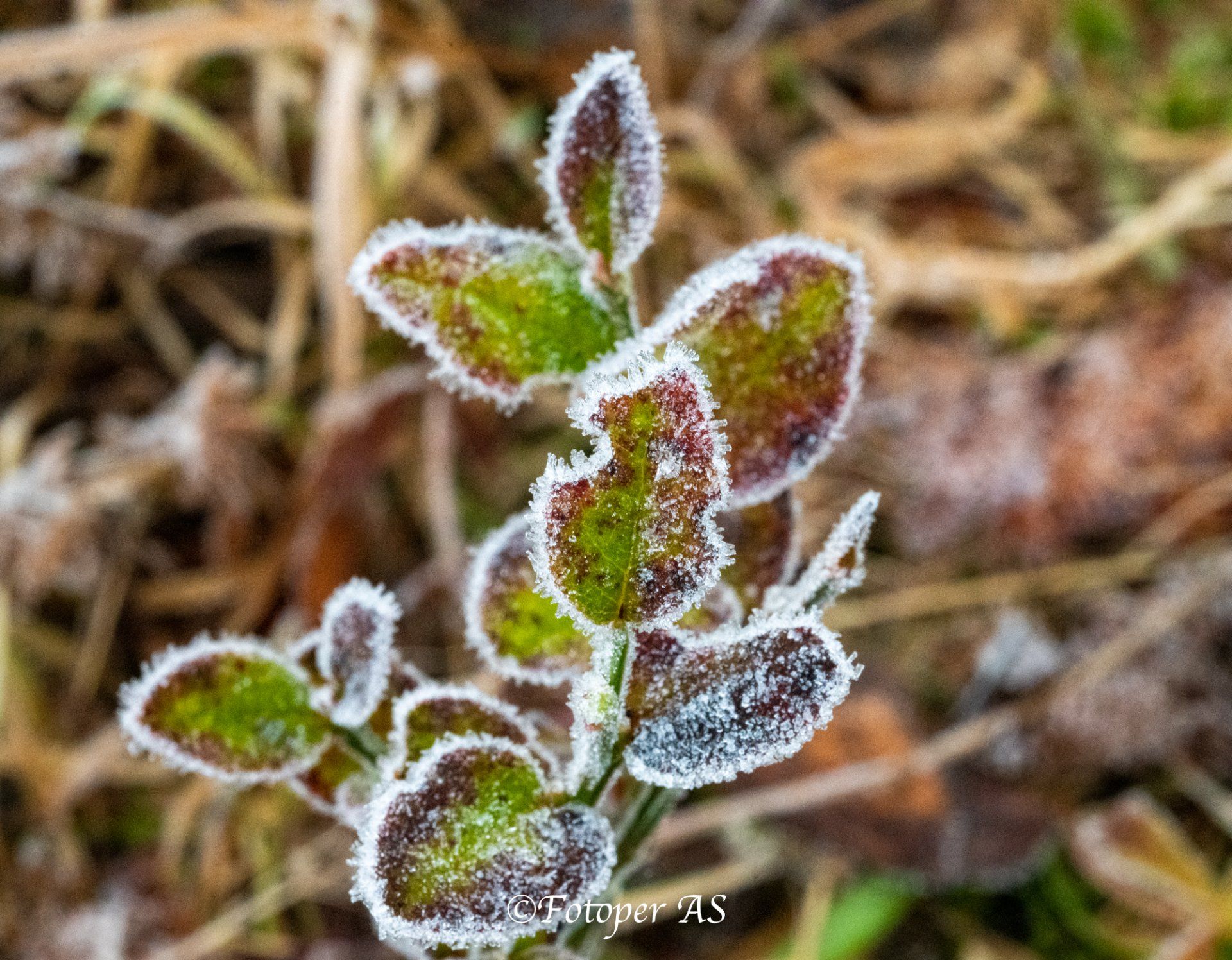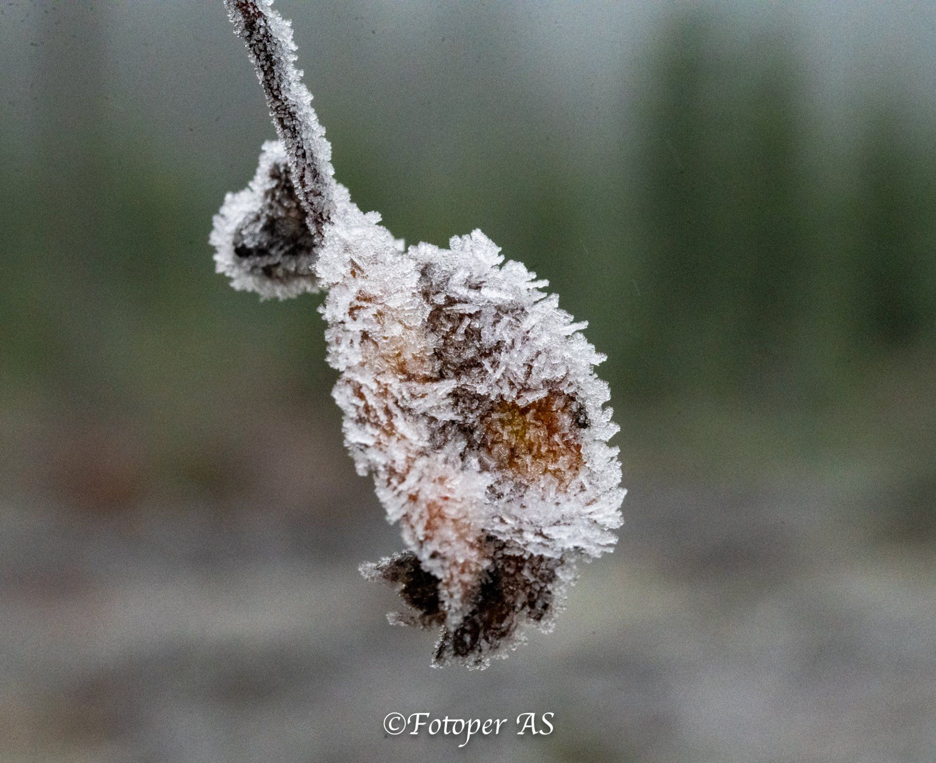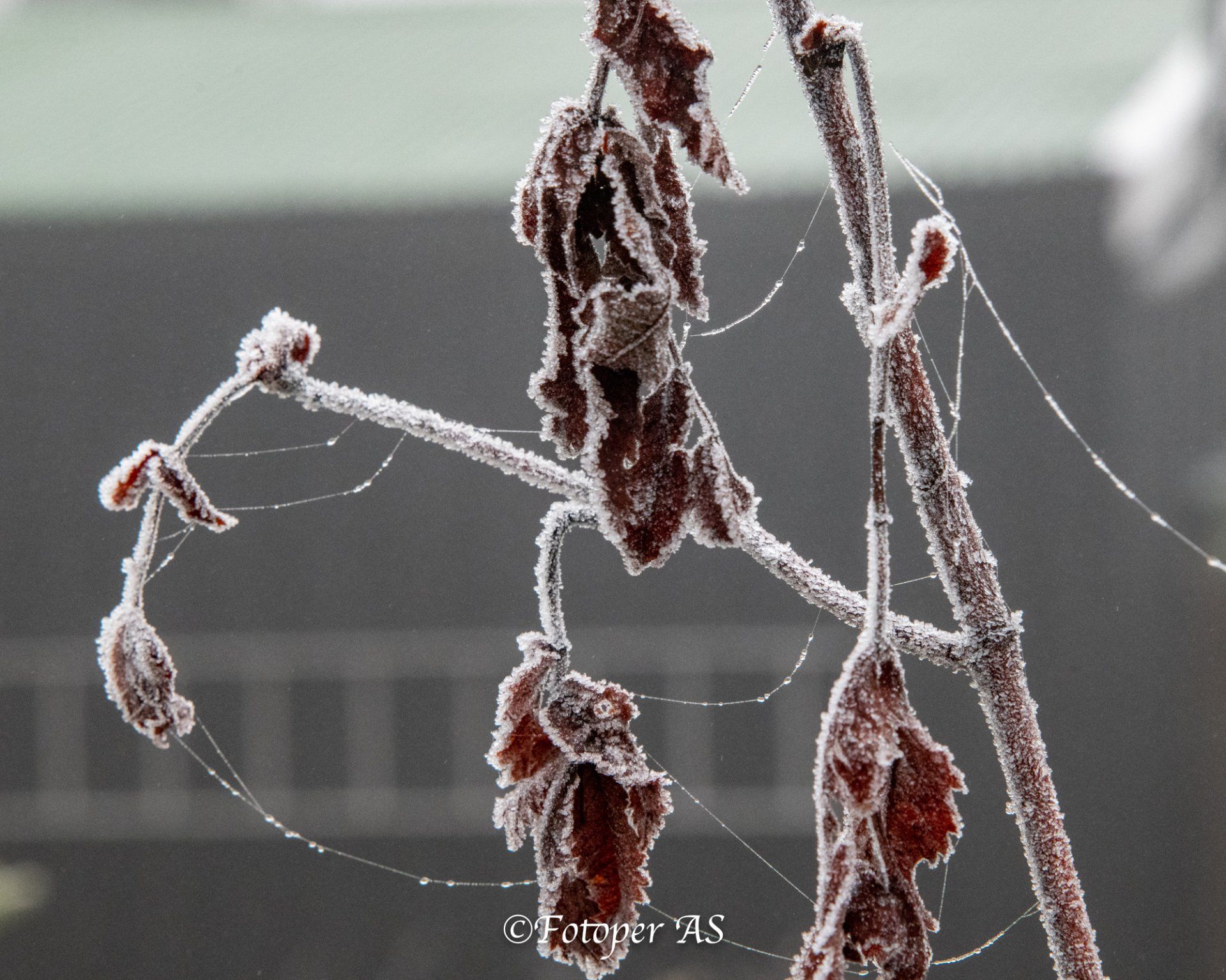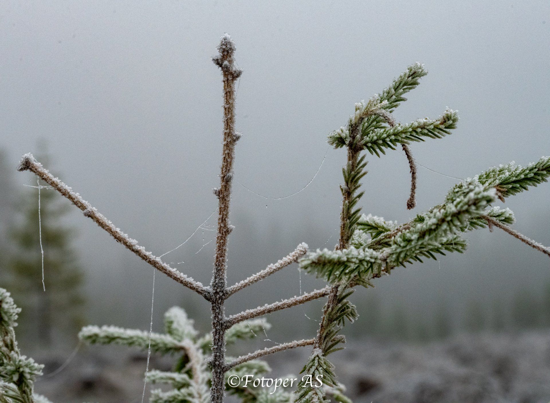 Frokosten er inntatt og jeg er klar for en runde med kamera. Ikke nødvendig å gå langt i dag, motivene står rimete og venter nesten utenfor døra. Det har vært noen kalde netter på skauen så jeg regner med at hjortelusflua har frysi i hjel.