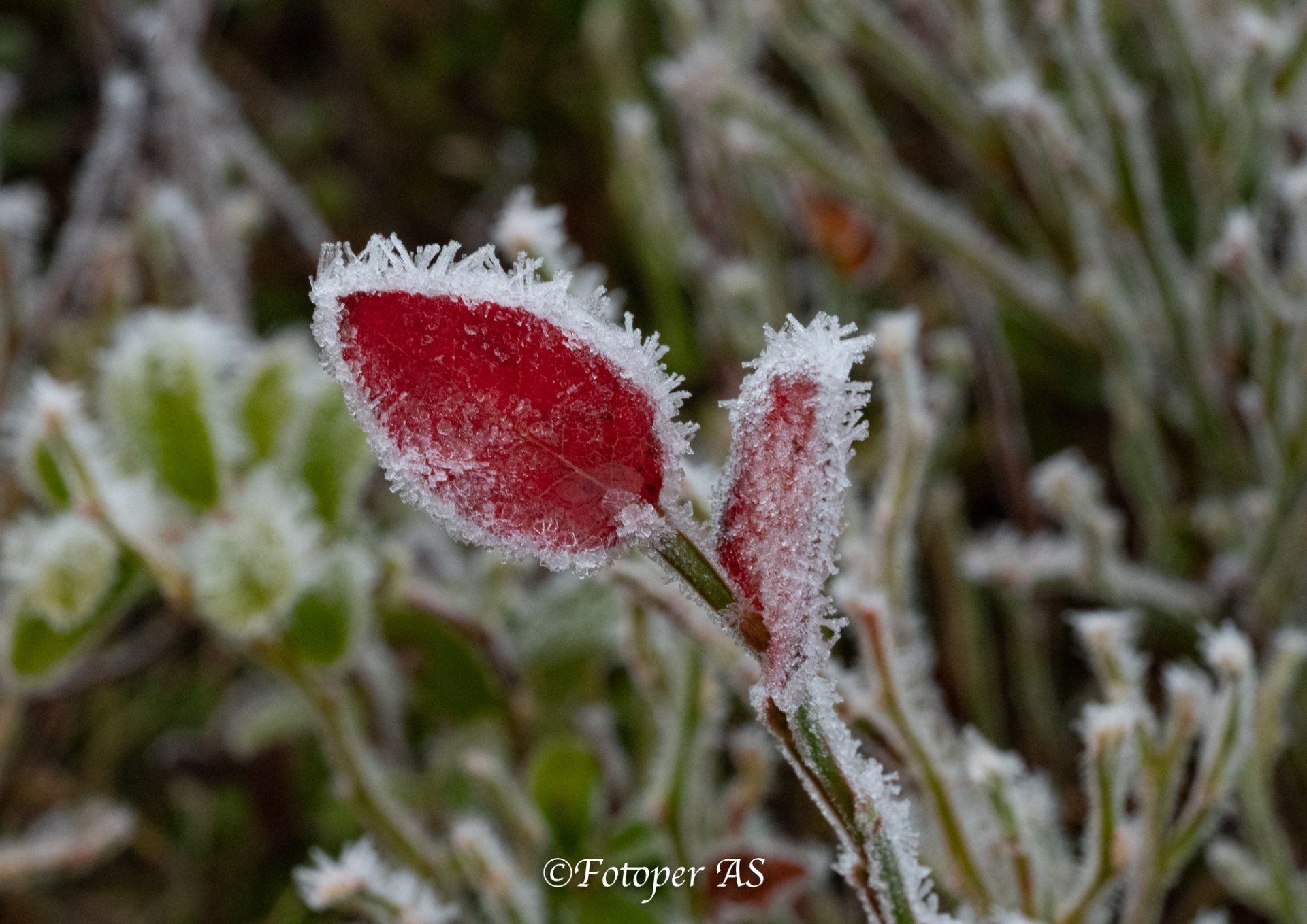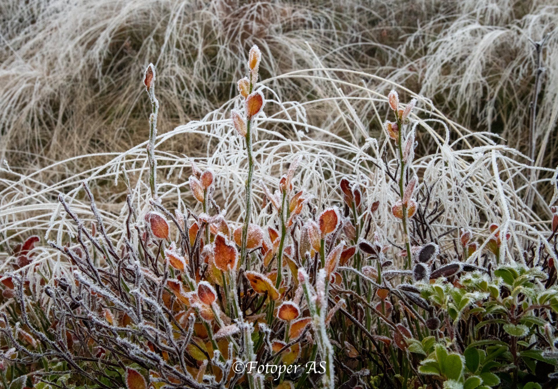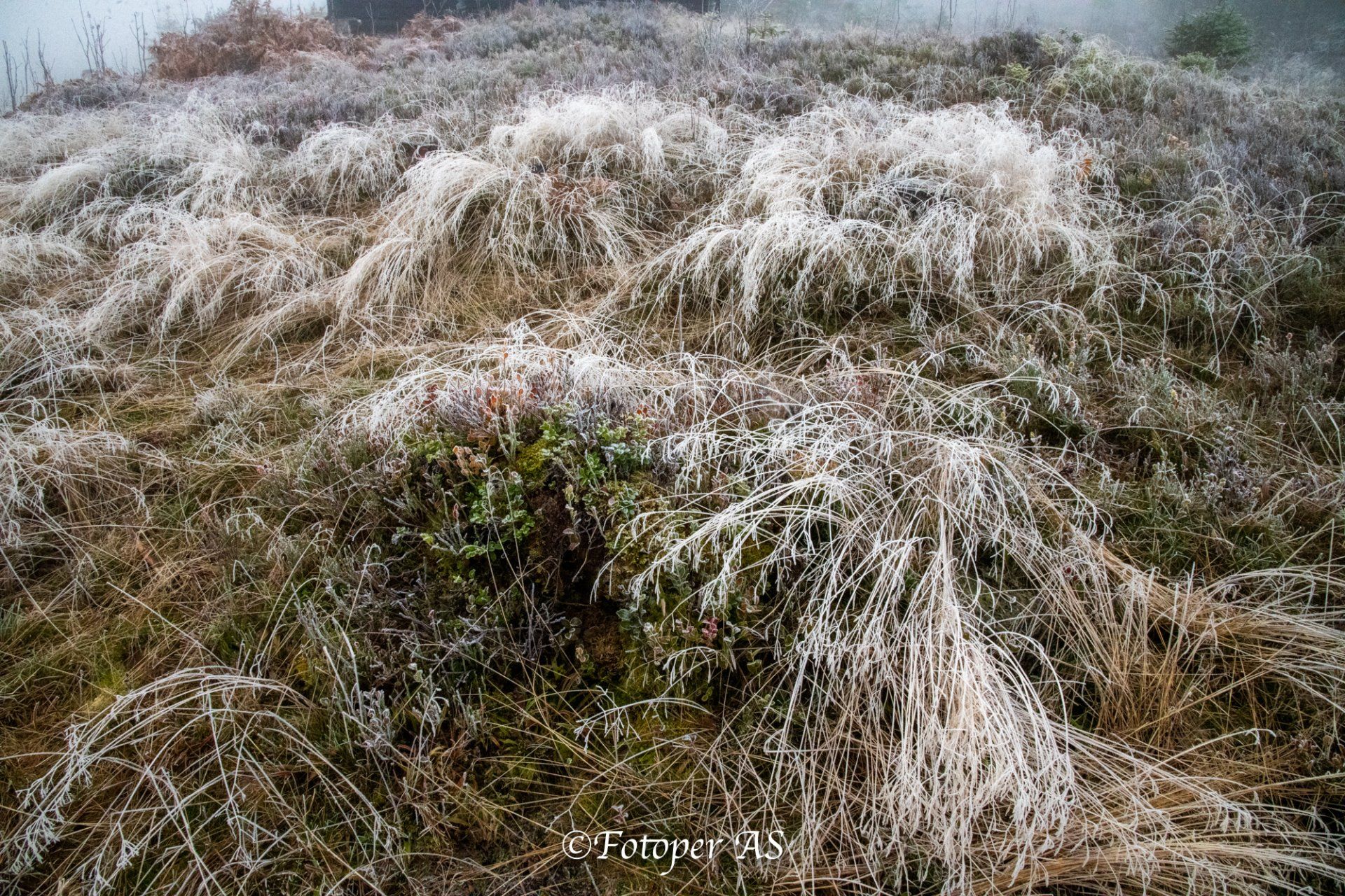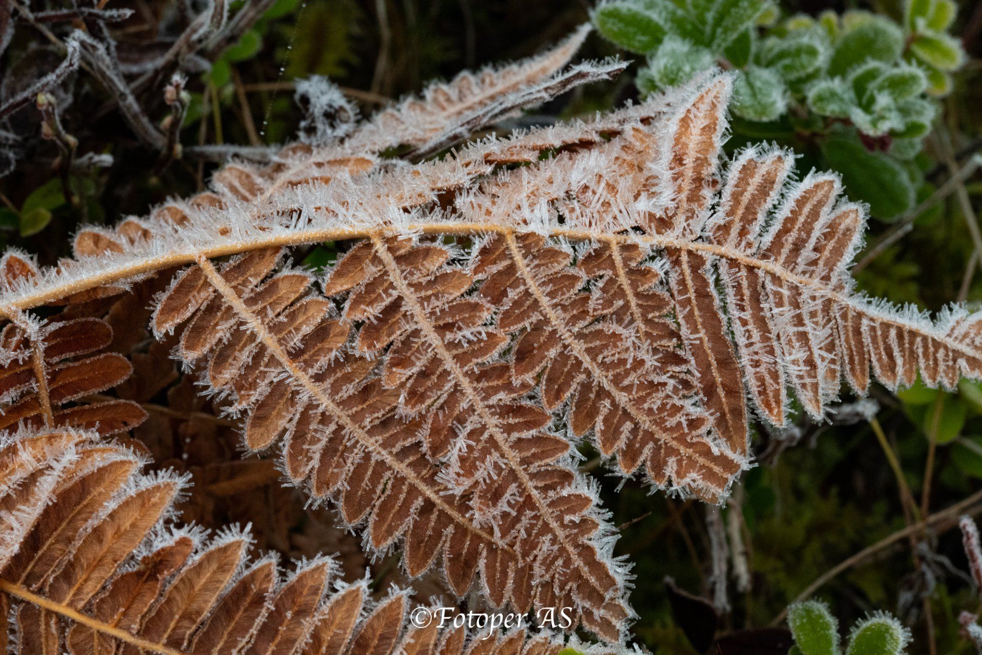 Frokosten er inntatt og jeg er klar for en runde med kamera. Ikke nødvendig å gå langt i dag, motivene står rimete og venter nesten utenfor døra. Det har vært noen kalde netter på skauen så jeg regner med at hjortelusflua har frysi i hjel.