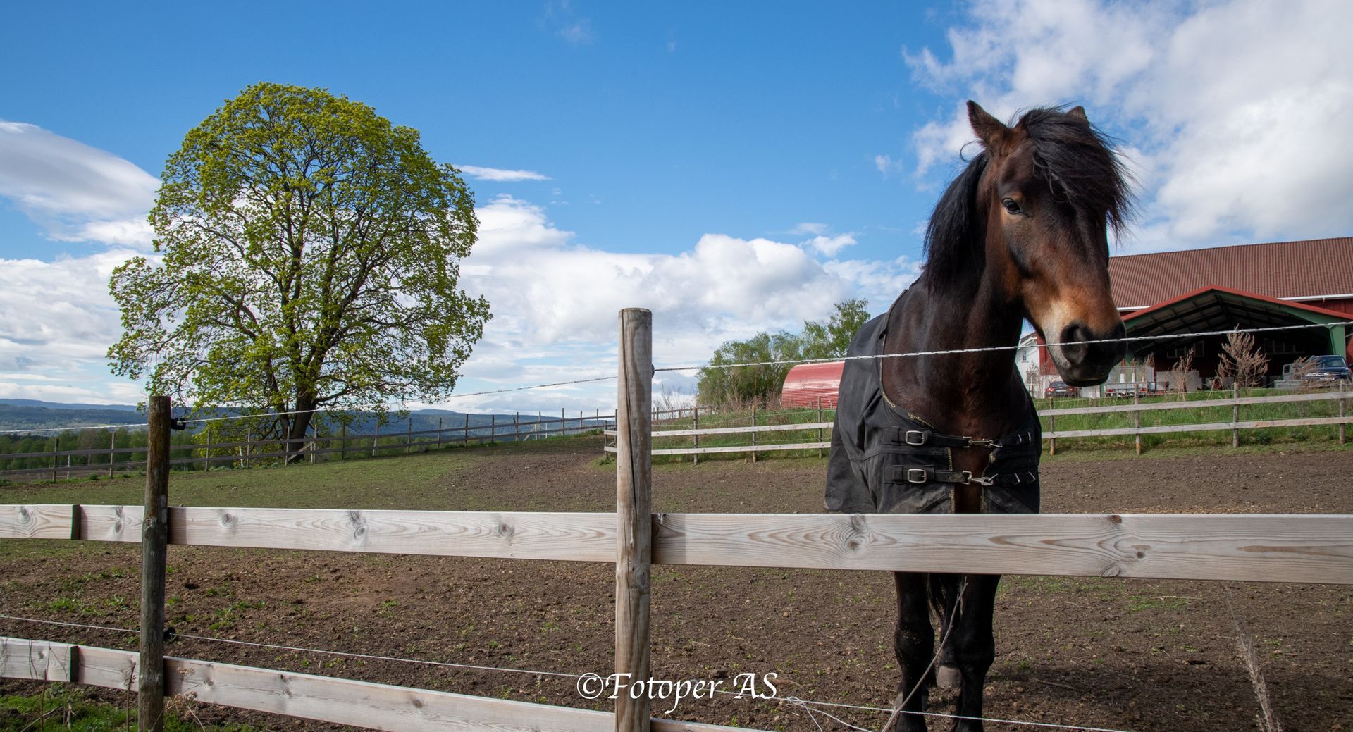 Det er et annet tre som er så fint året rundt her ved Mo gård. Det står i kanten av inngjerdingen der to hester går og beiter. De er selskapssyke ser det ut for, jeg får klø dem i panna og flytter litt på luggen til den ene hesten.